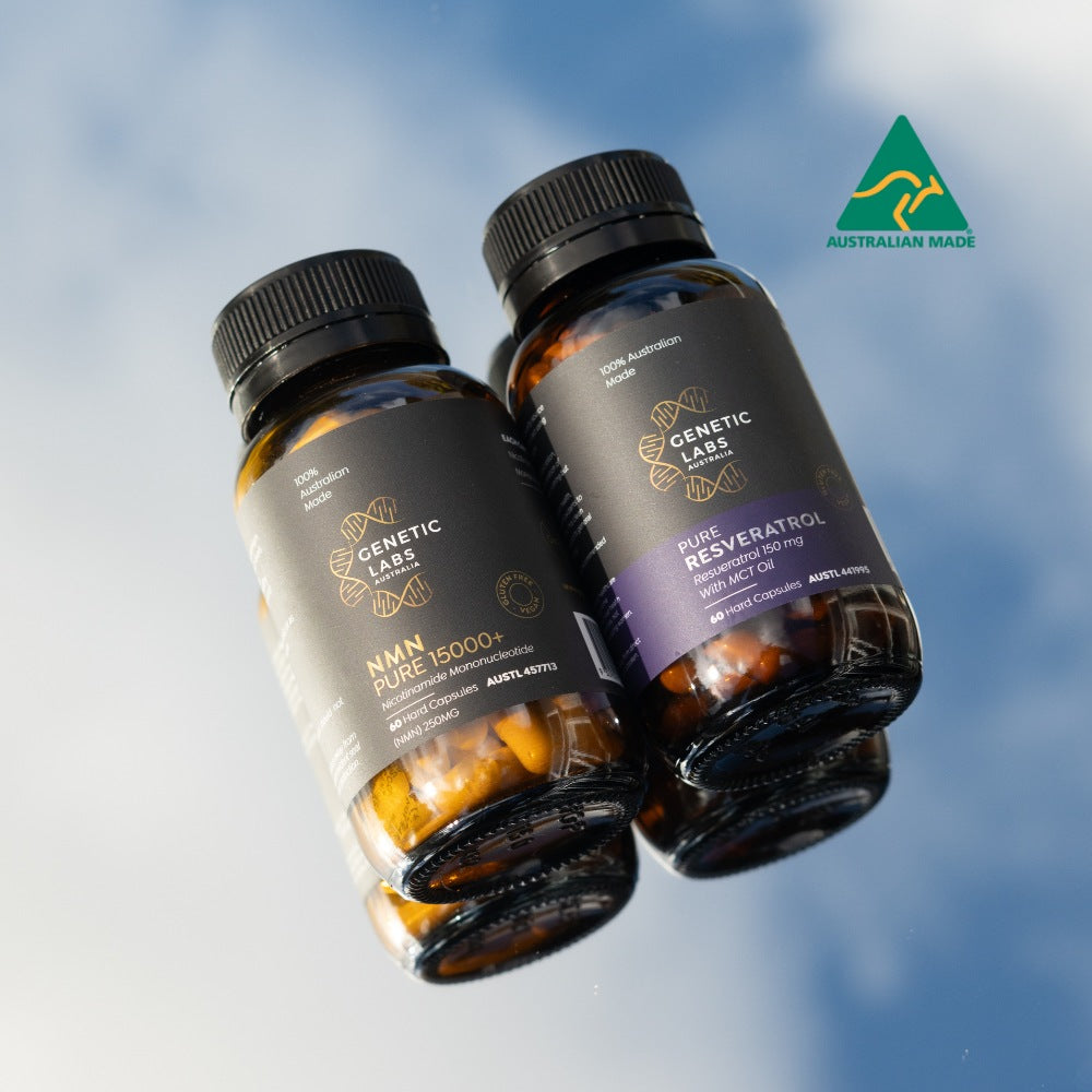 Enhance your longevity routine with the premium quality of NMN Pure & Resveratrol Bundle, proudly Australian-made and featuring NMN PURE alongside our Pure Resveratrol enriched with MCT Oil. This stack is meticulously crafted under stringent standards to support longevity with scientifically validated ingredients.